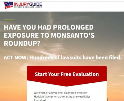 (myinjuryguide.com)"Lawsuits are being pursued over Monsanto’s failure to warn about the cancer risk from use of Roundup. You or a loved one may be entitled to settlement benefits or other compensation may be available for individuals who developed or been diagnosed with:
